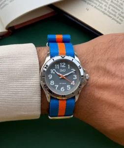 ساعت مچی Q&Q مدل Q44B یکی از مدلهای محبوب این برند ژاپنی است که با طراحی اسپرت و وزن سبک، گزینهای عالی برای استفادهی روزمره محسوب میشود. ترکیب رنگ آبی و نارنجی در بند نایلونی این ساعت، حس انرژی و شادابی را منتقل میکند و در عین حال با هر استایلی از اسپرت تا کژوال بهراحتی هماهنگ میشود.
