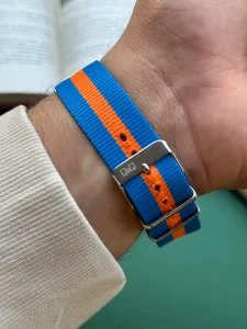 بند: نایلونی مقاوم با طرح دو رنگ آبی و نارنجی