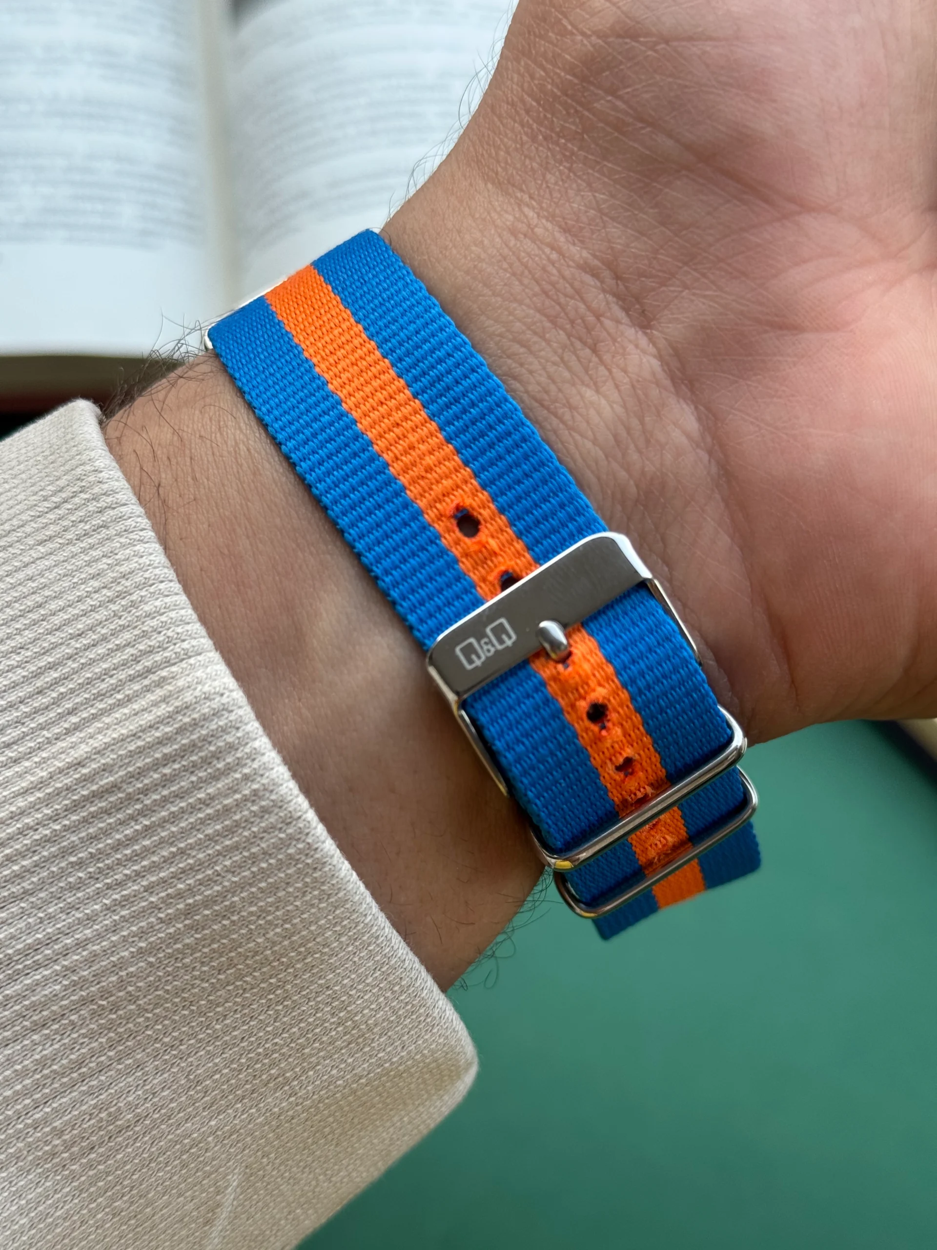 ساعت مچی Q&Q مدل Q44B یکی از مدلهای محبوب این برند ژاپنی است که با طراحی اسپرت و وزن سبک، گزینهای عالی برای استفادهی روزمره محسوب میشود. ترکیب رنگ آبی و نارنجی در بند نایلونی این ساعت، حس انرژی و شادابی را منتقل میکند و در عین حال با هر استایلی از اسپرت تا کژوال بهراحتی هماهنگ میشود.